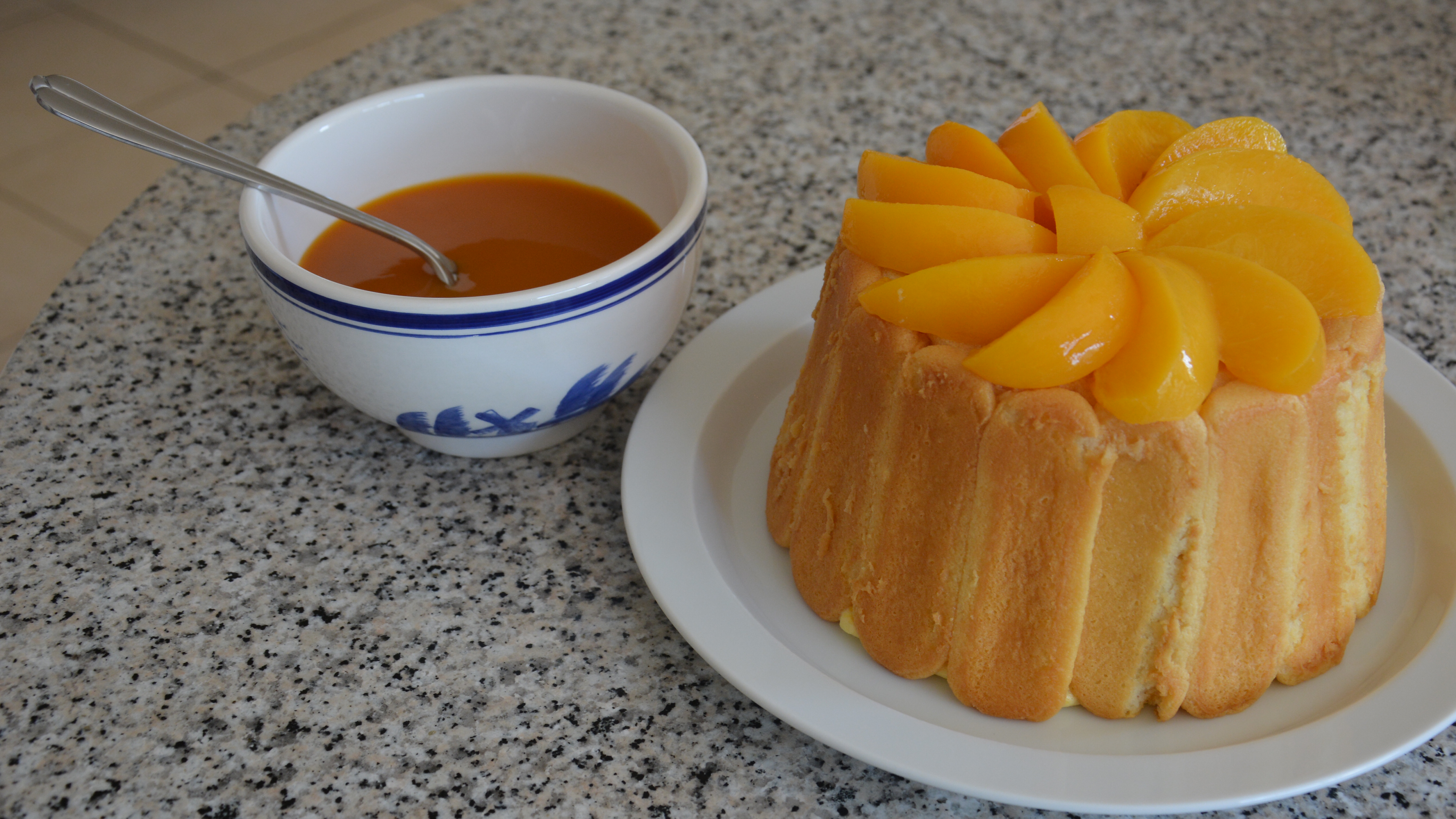 - Au moment de servir, retourner la charlotte dans le plat de service et décorer avec les pêches mises de côté un peu plus tôt. On peut l'accompagner d'un coulis de fruits.